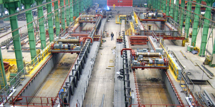 제철소 제강공장에 사용되는 다양한 기능의 크레인